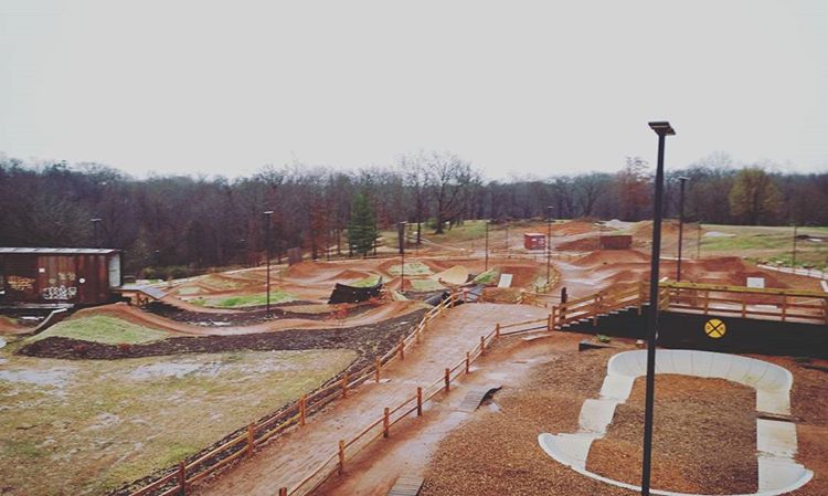 The Railyard is a bike park located in Rogers, Arkansas. This dirt jump bike park features wall rides, whale tales, and concrete lips. The park is designed to accommodate riders of all different skill-levels, beginner to expert, and different types of bicycles, from striders to full suspension bikes to dirt jumpers to BMX. It is open daily from 6 a.m. to 9 p.m., has lights, a pavilion, restrooms, water fountains, bike wash station, observation decks, dog park, and a large parking lot.